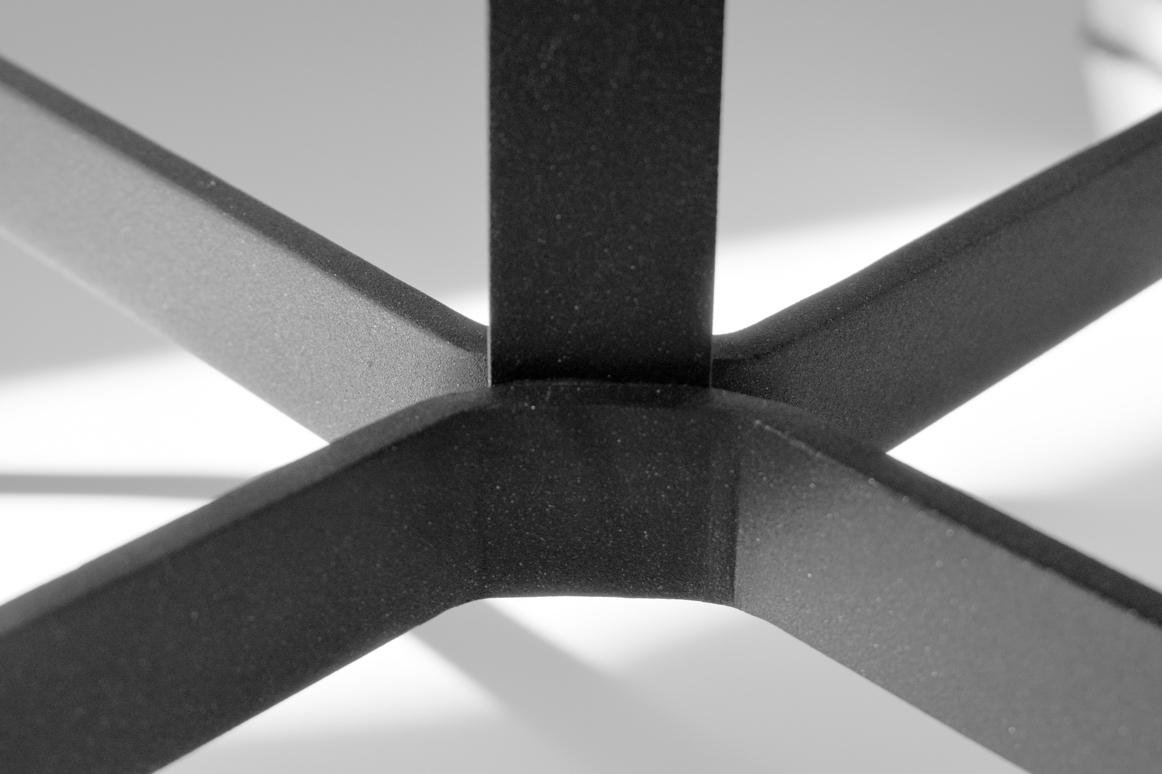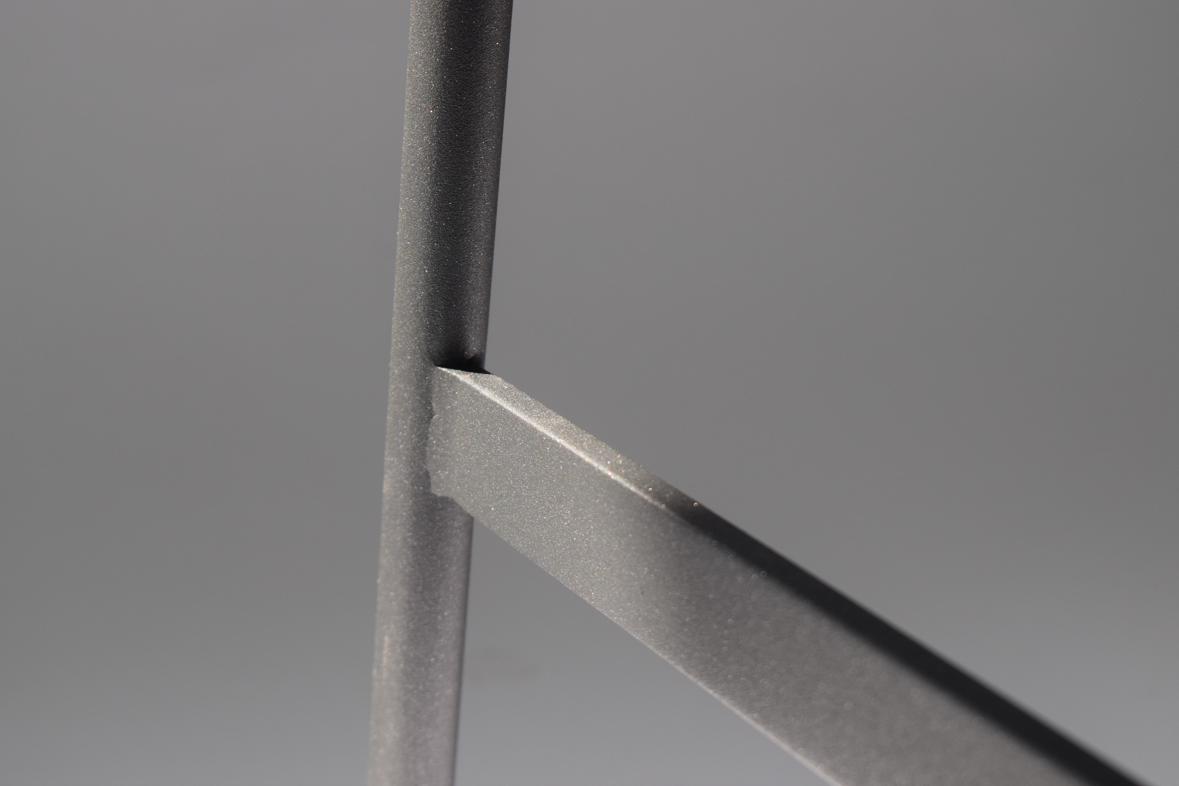 The iron bar structure was made with a hole in the middle which was filled with weld to secure the book plinth in place. It was then grinded down, making it invisible with a panel of toughened glass resting on the metal structure.